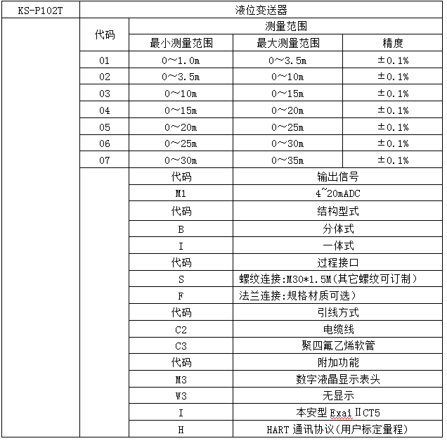 KS-P102T系列液位變送器選用高精度、高穩(wěn)定性擴散硅壓力傳感組件,通過高可靠性的放大電路及精密溫度補償,將被測液體的液位信號轉換成4~20mADC標準電信號。高質量的傳感器、精湛的封裝技術以及完善的裝配工藝確保了該產品的優(yōu)異質量和最佳性能。